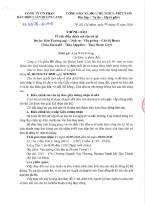 Các văn bản chính thức về điều chỉnh đã được công bố. Khách hàng và đối tác cần ghi nhận thay đổi này cho các giao dịch và thủ tục pháp lý liên quan đến căn hộ tại các tòa tháp được đề cập.